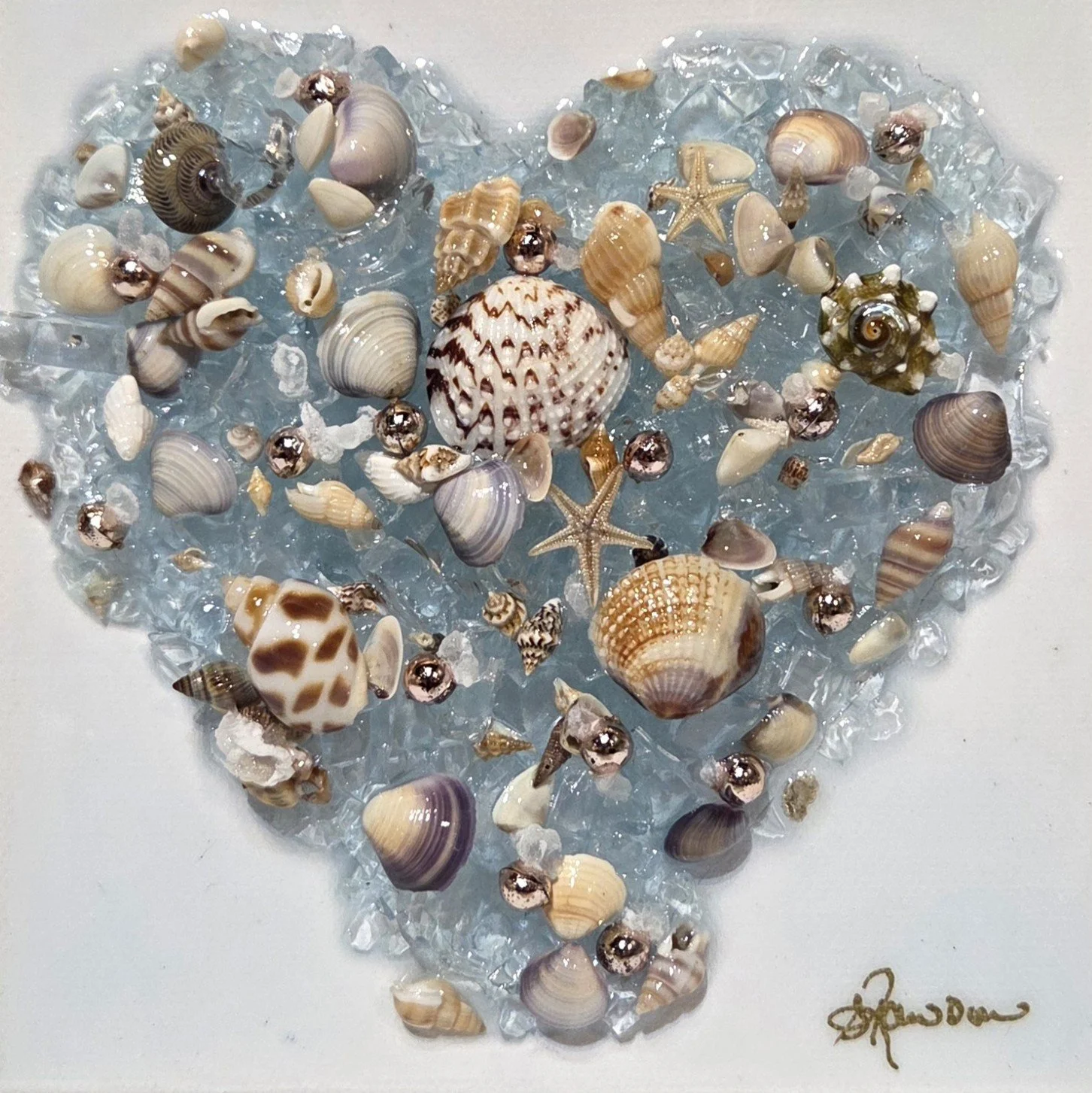 SHR272- Crystalline Heart with Gold and Pearl, 6x6, mixed media
